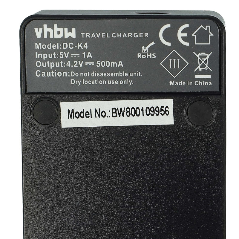 Mimoriadne praktická VHBW nabíjacia stanica pre nabíjanie batérií pre fotoaparáty/kamery, ktorá funguje cez MicroUSB konektor. Nabíjacia stanica sa pripája USB káblom ku každému zdroju pre mobilný telefón resp tablet, ktorý funguje cez MicroUSB konektor. Obsahuje LED indikátor stavu, ktorý nám ukazuje stav nabitia batérie. Súčasťou balenia je aj 40 cm dlhý USB kábel.